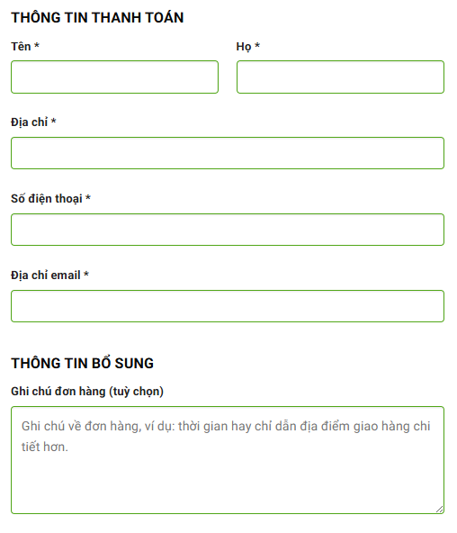 Điền đầy đủ thông tin cá nhân như họ tên, địa chỉ email, số điện thoại và địa chỉ giao hàng.