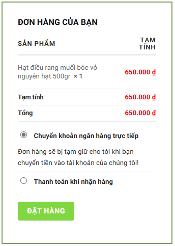 Nhấp vào nút “Đặt hàng” để hoàn tất quá trình đặt hàng.